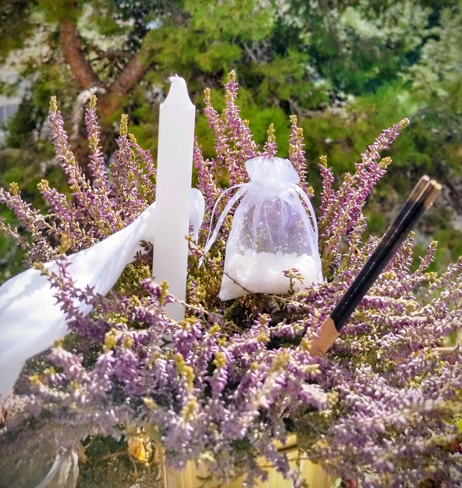 - 2 velas blancas pequeñas